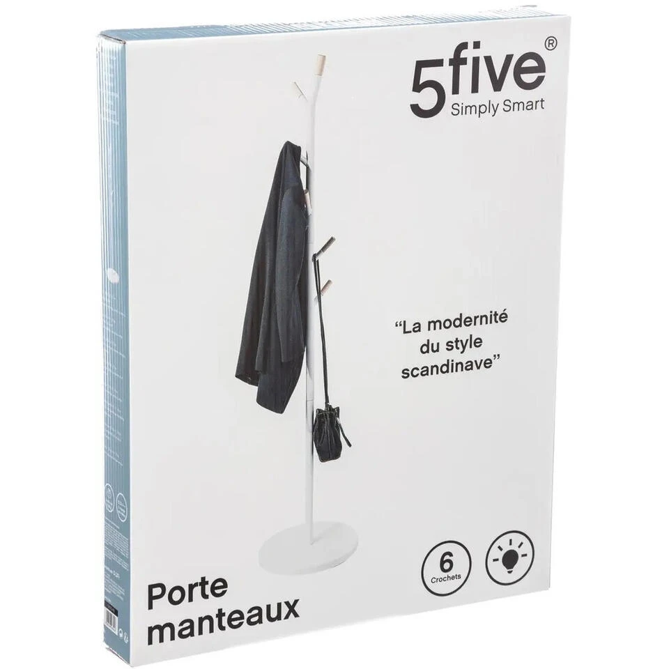 5Five Kapstok – Wit – Metaal/MDF – 6 Haaks – 40 X 175 Cm