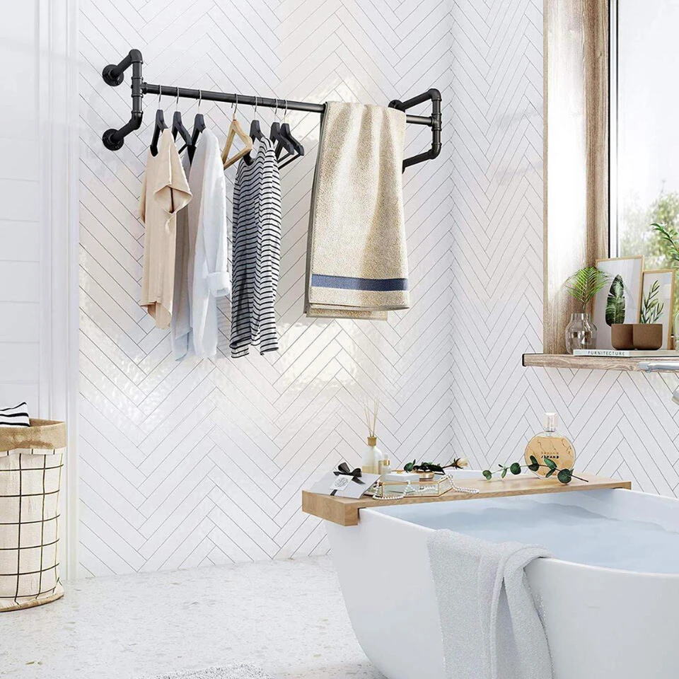 Heb je een leuke manier nodig om je jassen op te hangen? Dan bieden deze twee kledingrails de juiste ondersteuning. De zwarte metalen buizen met industrieel ontwerp zijn praktisch, maar ook bijzonder aantrekkelijk qua design. De afstand tussen de muur en de kledingstang bedraagt 30 cm. Je kan dus bijna alle kledinghangers aan de kapstok hangen zonder de muur te raken. De stangen zijn uit één stuk gemaakt en zijn daarom zeer stabiel. De metalen buis kan worden belast tot wel 60 kg. Deze kledingrails zijn dus ook geschikt voor zware leren jassen of winterjassen!
