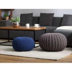 Beliani Poef BARBEL – Beige Waterhyacinth, Zeewier, Palmblad