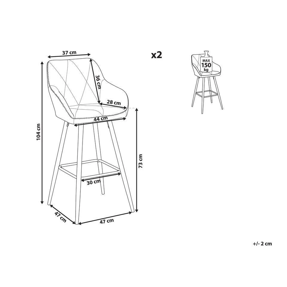 Praktische set van 2 in een moderne look. Verrijk je interieur met deze moderne set barkrukken. Of het nu voor de bar van je open keuken of in de overgangsruimte is, deze barkrukken vervullen hun functie overal en zien er tegelijkertijd ook nog eens heel stijlvol uit. De gepoedercoate, zwarte poten geven een mooi contrast met het grijs van de bekleding en zorgen ook voor een stabiele voet.