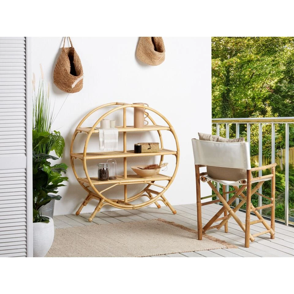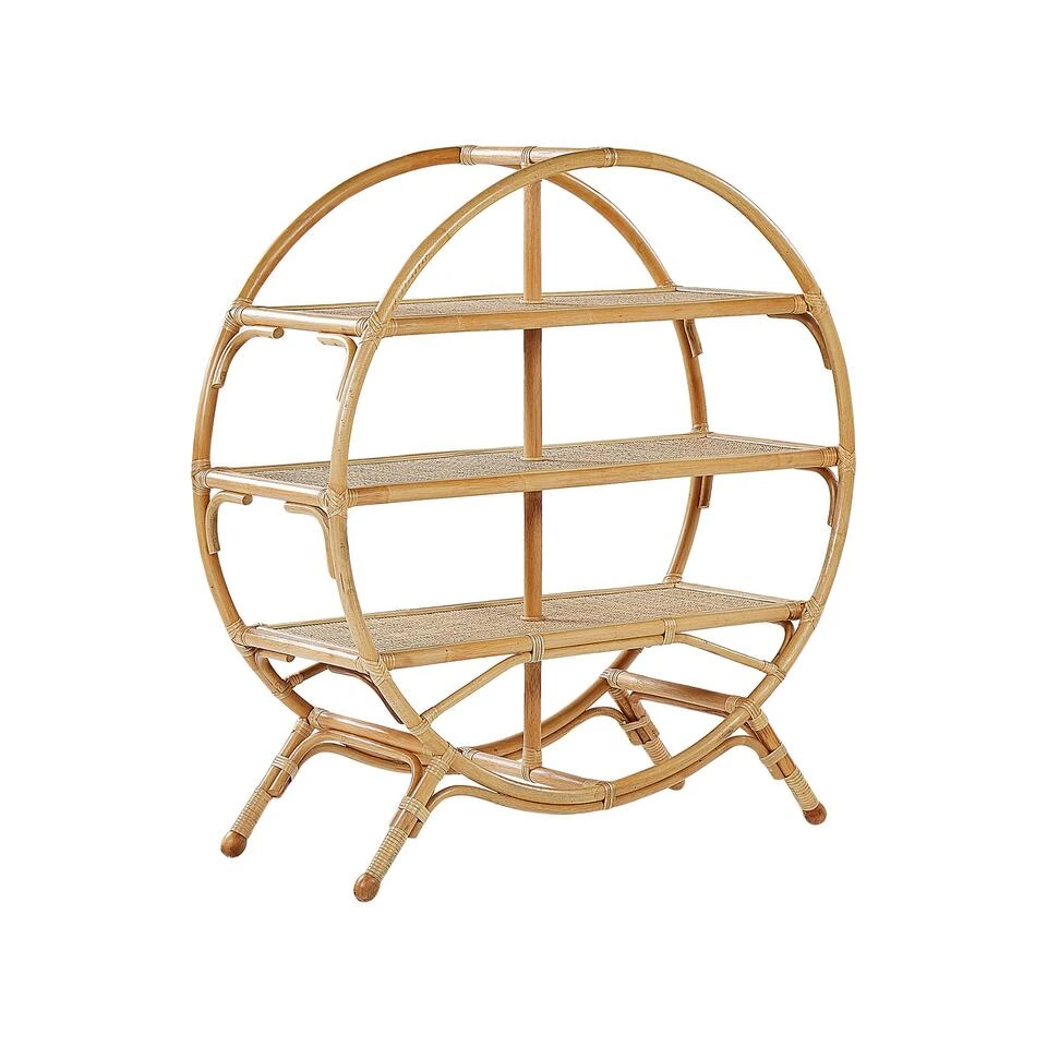 Ovale rotan boekenkast. Met deze ovale kast krijg je niet alleen extra ruimte om je boeken en accessoires op te bergen, maar ook een stijlvolle toevoeging aan je interieur. De kast is gemaakt van rotan, een natuurlijk en resistent materiaal en heeft een stevige constructie en drie planken. De opvallende moderne vorm wordt gecombineerd met boho-design, waardoor de boekenplank past bij verschillende interieurs, van boho en vintage tot meer traditionele.