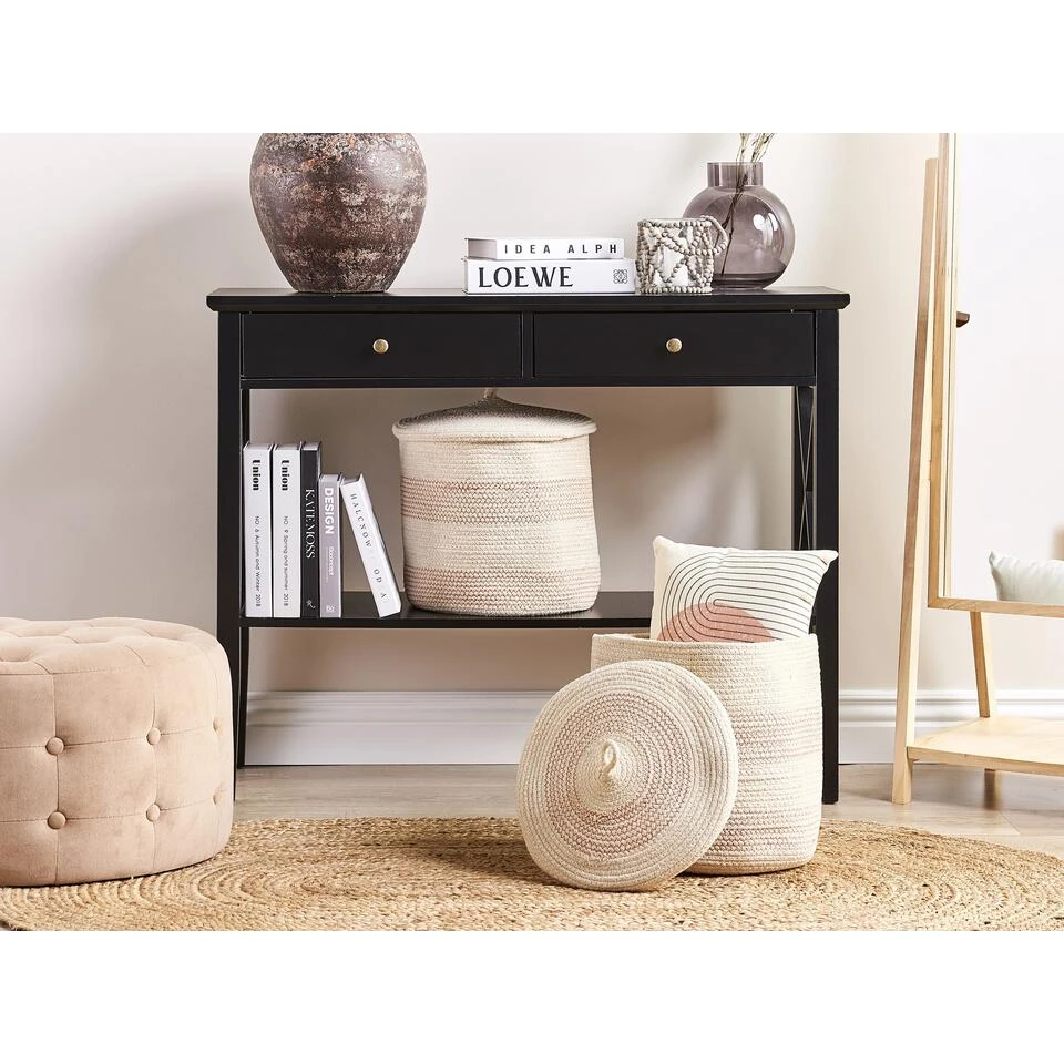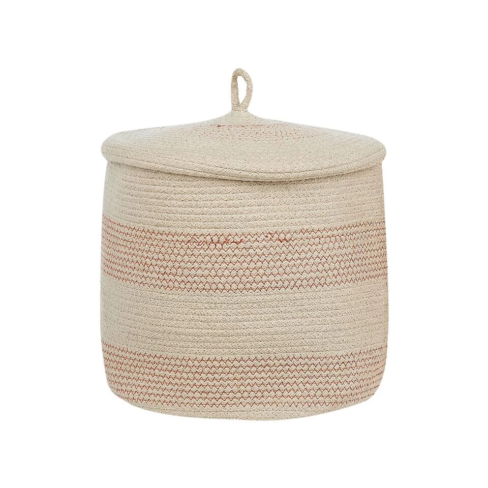 Gestreepte Boho Manden met Deksel. Deze manden zullen perfect staan in je boho-geïnspireerde huis en bieden je handige opbergruimte. Je kunt ze gebruiken om je extra kussens of plaids in op te bergen, maar ze doen het ook goed in de badkamer, als wasmand. De stukken worden geleverd met een deksel, in bijpassende stijl en kleuren. De handgemaakte accessoires zijn gemaakt van katoen, waardoor ze slijtvast en makkelijk schoon te maken zijn.