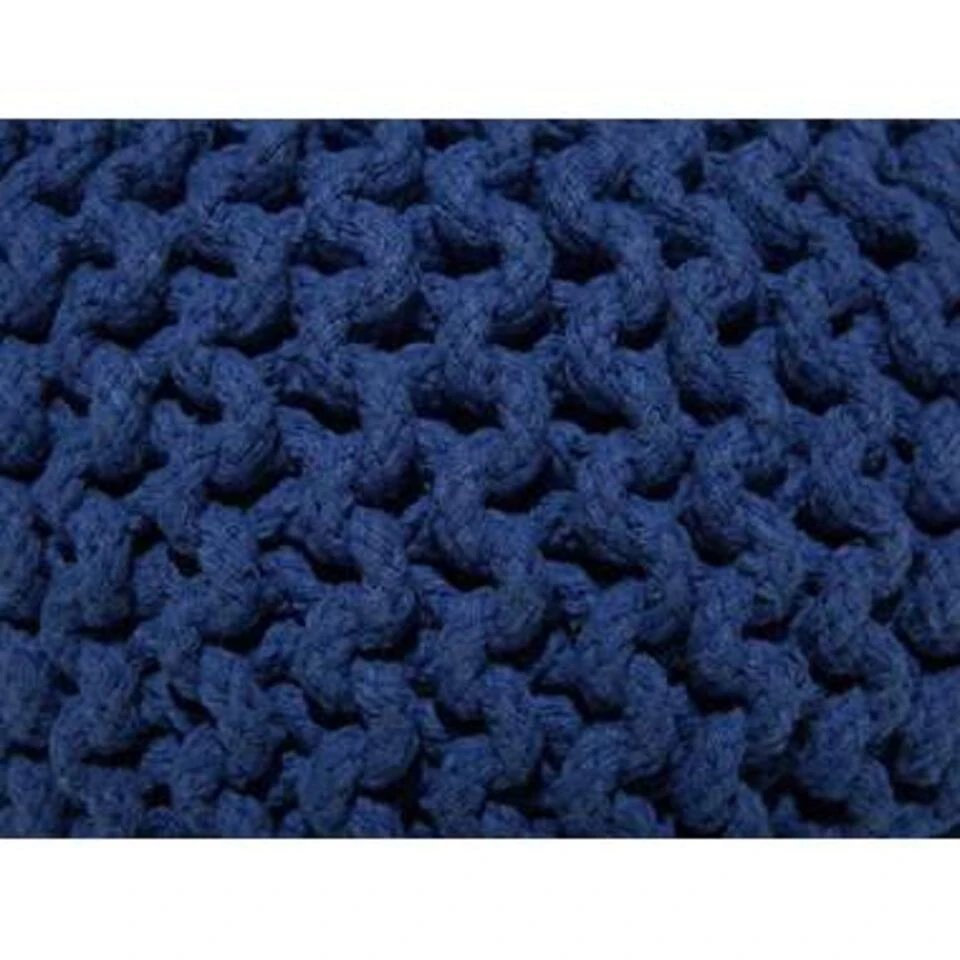Donkerblauwe ronde katoenen poef. Als je op zoek bent naar een vrolijk accent om je interieur op te vrolijken, dan is deze schattige gebreide ronde poef perfect. Met dik weefsel in een warme kleur en stevige, hoogwaardige vulling, kan het dienen als voetenbank, als basis voor een tafeltje of gewoon als decoratief stuk – de mogelijkheden zijn eindeloos. Wees creatief met het mixen van kleuren en maten om een ideale compositie voor je woonruimte te maken en geniet van de charmante moderne sfeer.