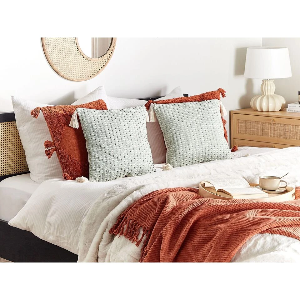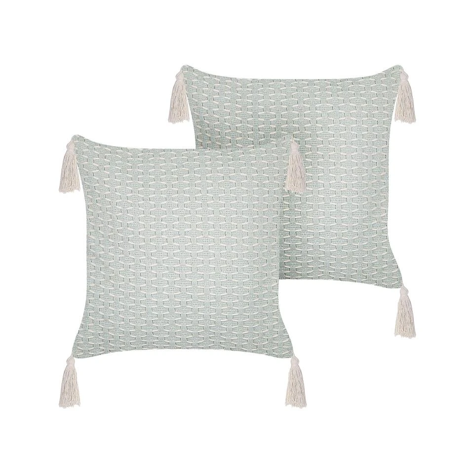 2 sierkussens met geometrisch patroon. Deze decoratieve kussenset is een geweldige manier om de look van je woonkamer op te frissen en een gezellige sfeer te geven. De set bestaat uit verwijderbare koffers en hoogwaardige vullingen en gaat lang mee. Elk kussen heeft een geometrisch patroon en kwastjes die moderne, boho- en traditionele interieurs versterken.