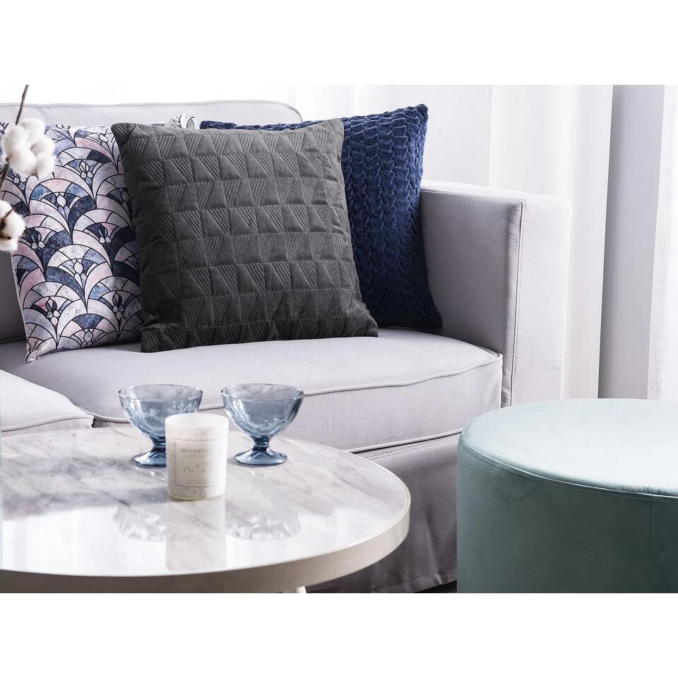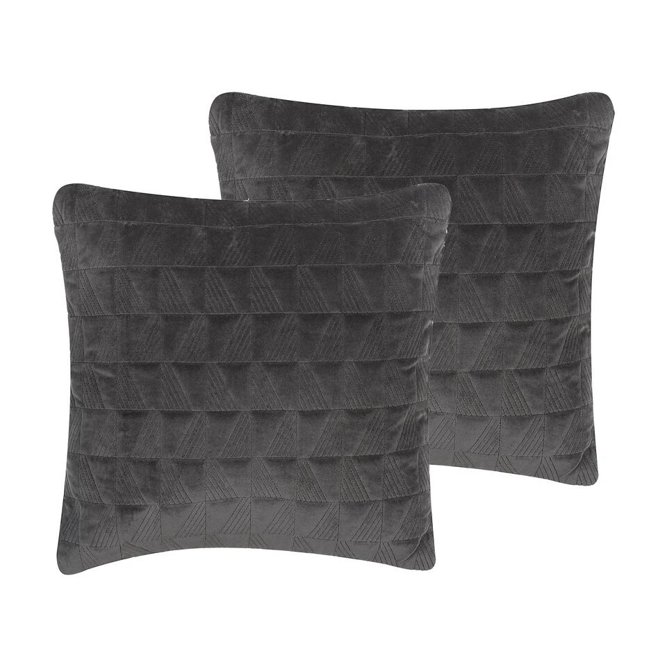 Decoratief zacht grijs kussen met modern geometrisch patroon. Aantrekkelijke structuur, intense grijze kleur en een ongebruikelijk vierkant patroon – dit decoratieve kussen biedt alles wat je hart begeert! Het kan naar behoefte in de woonkamer of slaapkamer worden geplaatst en geeft het interieur een origineel tintje.