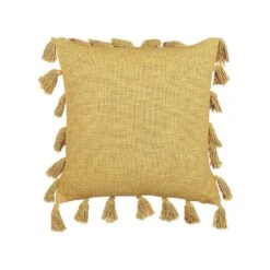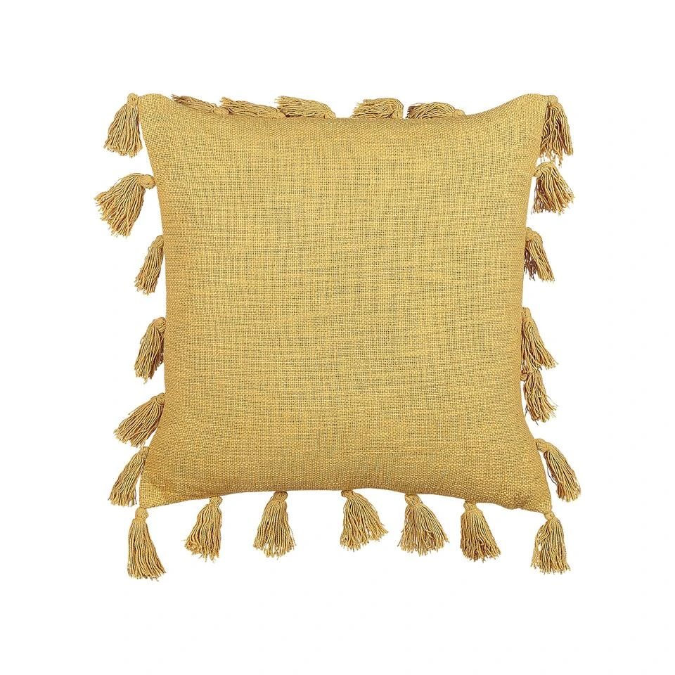 Decoratief kussen. Maak je bank of bed af met dit simpele maar stijlvolle sierkussen. De kussensloop is gemaakt van hoogwaardig katoen en de dikke vulling is zacht polyester. De mooie gele kleur en de kwastjes aan de zijkanten geven het sierkussen een boho look. De hoes met ritssluiting is gemakkelijk schoon te maken.
