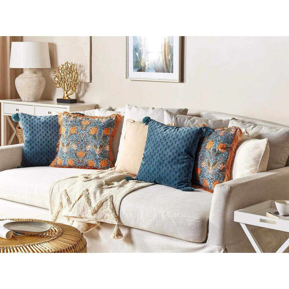 Set van 2 kussens met bloemenpatroon . Verlevendig elke ruimte met kleurrijke accessoires. Deze decoratieve set kussens heeft een prachtig bloemenpatroon met franje aan de randen, dat een bank of bed in neutrale tinten mooi zal sieren. De hoezen zijn gemaakt van hoogwaardig katoen en de voorkant heeft een zacht aanvoelende fluwelen textuur.