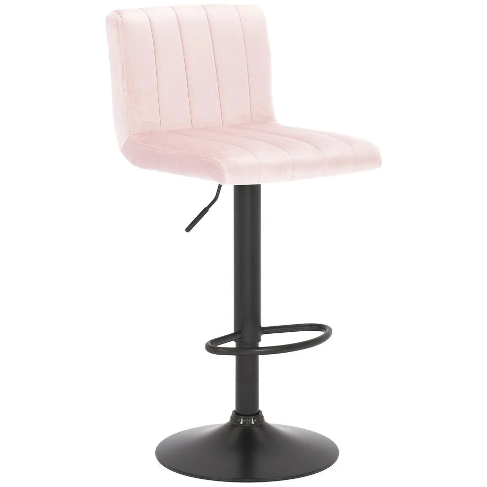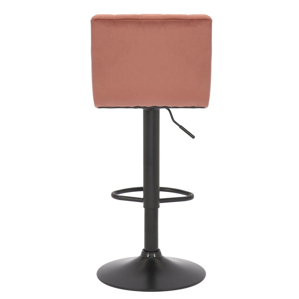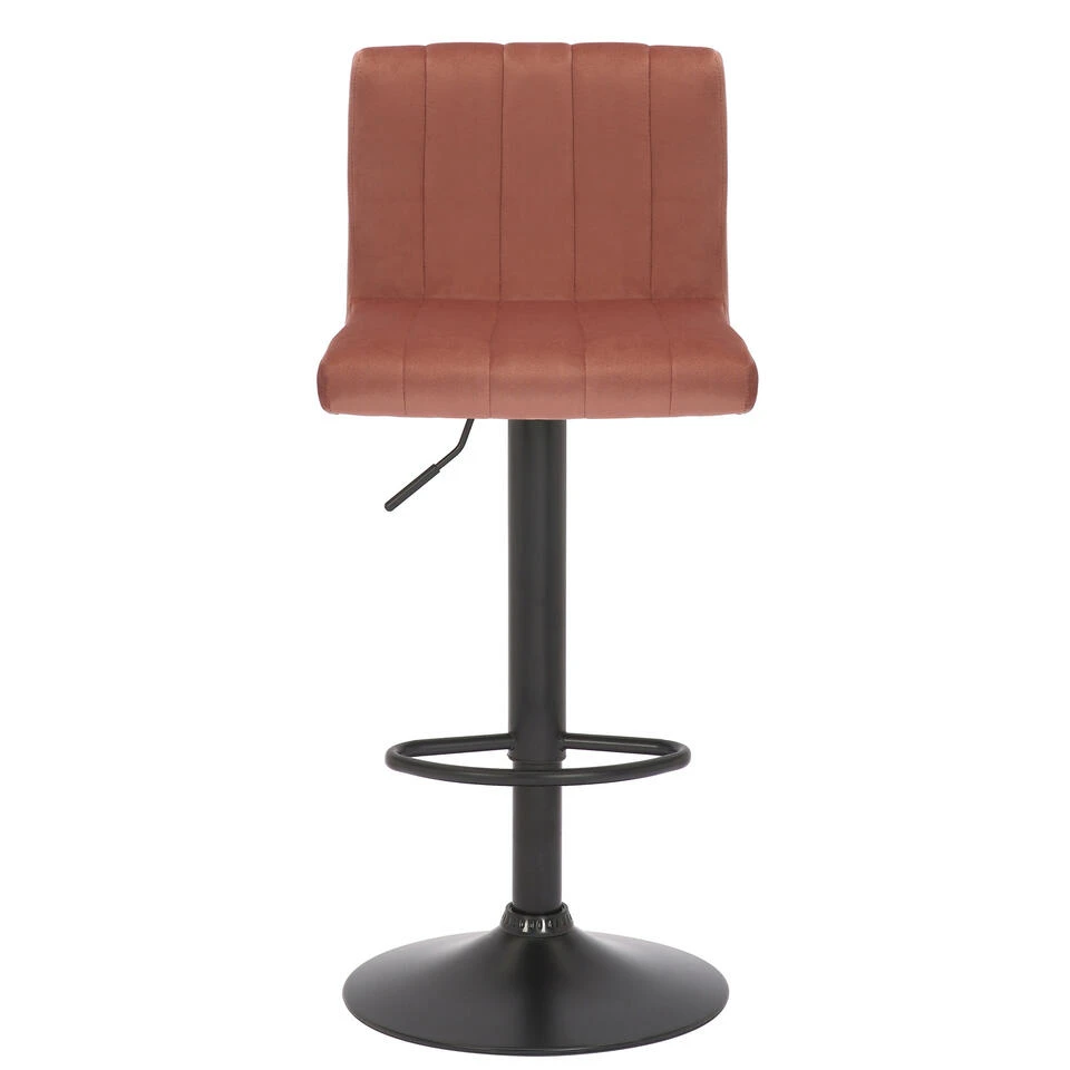 Deze barkruk geeft elke ruimte een exclusieve uitstraling en overtuigt niet alleen door zijn uitstekende zit eigenschappen, maar ook door zijn moderne design. De zitting is bekleed met een gemakkelijk te onderhouden fluwelen hoes. Met behulp van de gasveer kan dit model traploos op de gewenste hoogte worden ingesteld, zodat het ideaal geschikt is voor elke aanrechthoogte. De voetsteun, die voor een zeer goed zitcomfort zorgt, kan synchroon met de hoogte van de zitting worden versteld. De zitting kan samen met de voetsteun 360° gedraaid worden. De trompetvoet van zwart metaal heeft vloerbeschermers aan de onderkant om te voorkomen dat er krassen op oppervlakken komen.