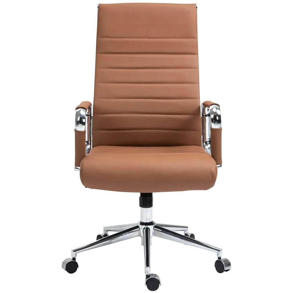 Deze exclusieve Columbus bureaustoel overtuigt niet alleen door zijn moderne look, maar ook op het vlak van comfort kan niemand hem voor de gek houden. De hoogwaardige bekleding zorgt voor een aangename zitervaring gedurende meerdere uren. Voor de bekleding van de zitting en de rugleuning werd gebruik gemaakt van rundleder van hoge kwaliteit. Aan de onderzijde bevindt zich een gemakkelijk te onderhouden bekleding van kunstleer. De zithoogte is traploos instelbaar en garandeert ergonomisch zitten. Bovendien is de bureaustoel uitgerust met een schommelmechanisme, dat voor meer bewegingsvrijheid zorgt. De stabiliteit wordt gegarandeerd door het metalen frame in chroomlook.
