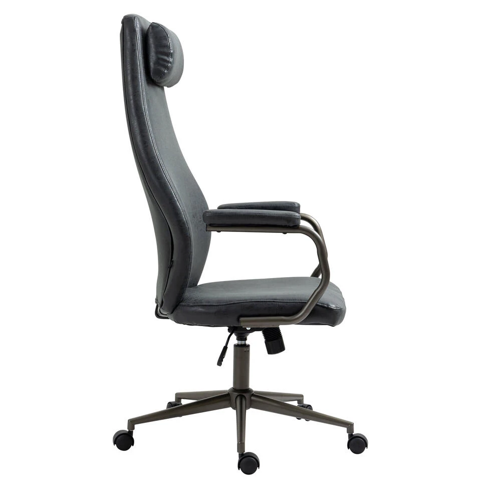 Deze gevormde bureaustoel overtuigt niet alleen met zijn uitgesproken industriële look, maar ook qua comfort kan niemand deze bureaustoel voor de gek houden. De slijtvaste kunstlederen bekleding en de hoogwaardige bekleding zorgen voor een aangename zit ervaring gedurende meerdere uren. De hoge rugleuning heeft een aantrekkelijke vorm en de zithoogte van de stoel is traploos instelbaar en garandeert ergonomisch zitten. Bovendien is de bureaustoel uitgerust met een schommelmechanisme dat zorgt voor meer bewegingsvrijheid. De stabiliteit wordt gewaarborgd door het metalen frame in zwart. Dankzij de vijf soepel lopende wielen rolt hij gemakkelijk over de vloer, zowel op harde vloeren als op tapijt.