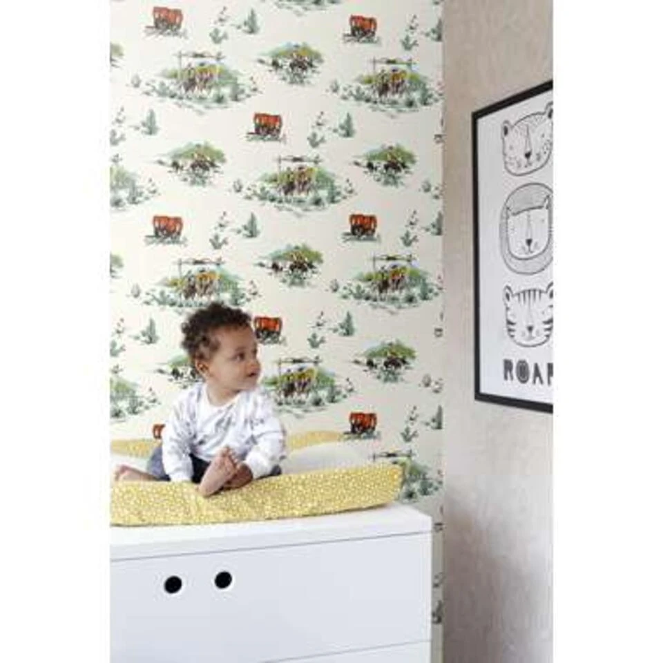 Gecombineerd met lichte kleuren en natuurlijke materialen creëer je met dit kinderbehang een rustgevende en tegelijkertijd warme en gezellige sfeer.