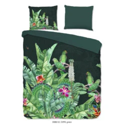 Dekbedovertrek “Cato” van Good Morning met papegaaien, in de kleur “Groen” is gemaakt van 100% Cotton. Deze kwaliteit is ademend, vocht absorberend en voelt zacht en soepel aan.