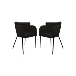 HSM Collection Eetkamerstoel Luca Set Van 2 Antraciet/Zwart Teddy/Bouclé/Metaal