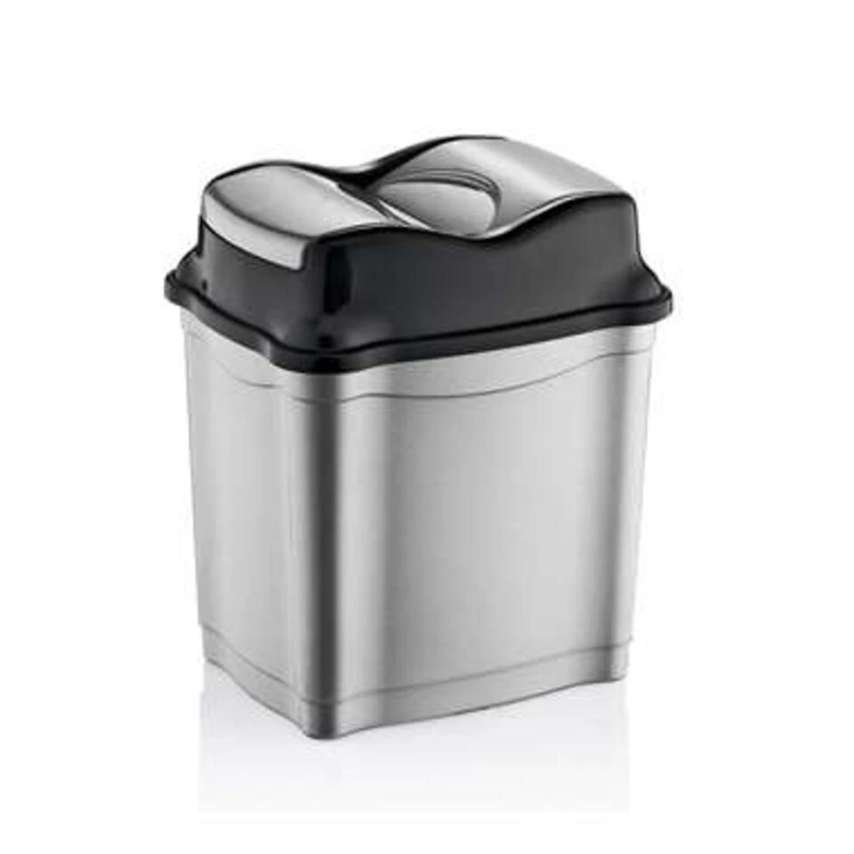 Een zilver/zwarte vuilnisbak met afneembare deksel in de kleur zilver/zwart. De vuilnisemmer heeft een inhoud van 28 liter en een ge?ntegreerde bak. BPA vrij. Afmeting ca: L34,5 x B26 x H49,4 cm. Materiaal: hoogwaardig kunststof. Een ideale afvalemmer voor de keuken/kantoor.