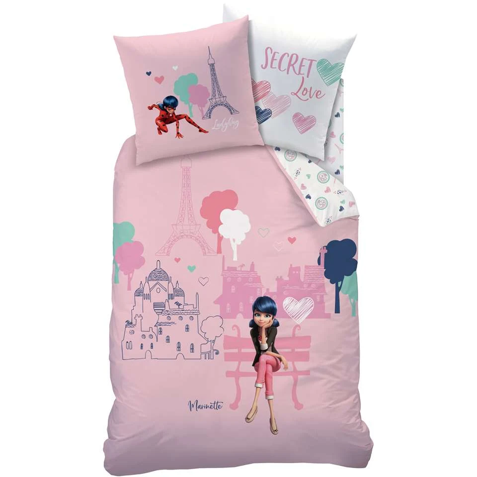 Miraculous Dekbedovertrek Secret. Dit mooie dekbedovertrek van Miraculous Ladybug is een aanwinst voor in de slaapkamer van een fan. Marinette leidt een dubbelleven en is stiekem verliefd op Adrien. In de lichtstad Parijs redt deze superheld samen met Cat Noir keer op keer de dag. Het katoenen dekbedovertrek en kussensloop zijn tweezijdig bedrukt, waardoor er gevarieerd kan worden met het opmaken van het bed. Een leuk cadeau om te geven doordat de set in een bijpassend katoenen tasje geleverd wordt.