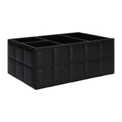 Een bureauorganizer is de handigste manier om spullen te bewaren op je bureau. In de vier vakken bewaar je diverse bureau accessoires. De pennenhouder is gemaakt van PU-leer, wat zorgt voor een zowel stoere als luxe uitstraling. De houder heeft twee grotere en twee kleinere vakken.