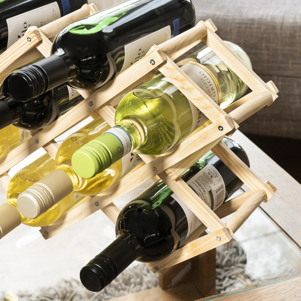 Ben jij een wijnliefhebber, maar is jouw wijnvoorraad beperkt tot 10 flessen? Dan is dit wijnrek voor 10 flessen perfect voor jou. Het houten wijnrek heeft een minimalistisch design. Het hout geeft het rek een landelijke uitstraling. Door het beperkte formaat past het rek in elke keuken, kelder of woonkamer. Bovendien is het wijnrek inklapbaar, dus als je het tijdelijk niet gebruikt kun je het rek eenvoudig opruimen. Dat maakt dit rek ook erg geschikt om bijvoorbeeld alleen neer te zetten als je een feestje hebt. Wil je meer dan 10 wijnflessen opslaan? Dan kun je goed meerdere van deze rekken naast elkaar zetten. Zo heb je altijd genoeg ruimte voor jouw wijncollectie.