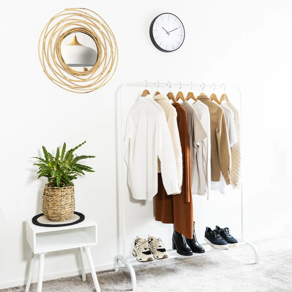 Het rek past met afmetingen van 40 cm (lengte) bij 110 cm (breedte) bij 150 cm (hoogte) bijna overal. Je kunt het rek gebruiken om je allermooiste kledingstukken uit te stallen, of – als je niet zoveel kleding hebt – voor je volledige garderobe. Het schoenenrek aan de onderkant biedt plaats voor meerdere paren.