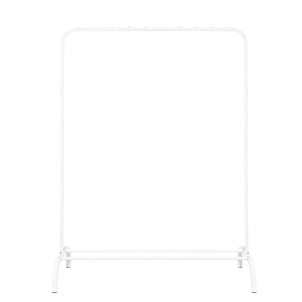 Het QUVIO kledingrek met schoenen opbergruimte past door de neutrale witte kleur binnen elk soort interieur. De bovenkant is zo gemaakt dat de kledingitems niet tegen elkaar aan worden gedrukt en zo goed kunnen drogen, mochten ze net uit de was komen. Bespaar ruimte door deze kledinghangers te gebruiken waar je 5 broeken aan kunt ophangen.