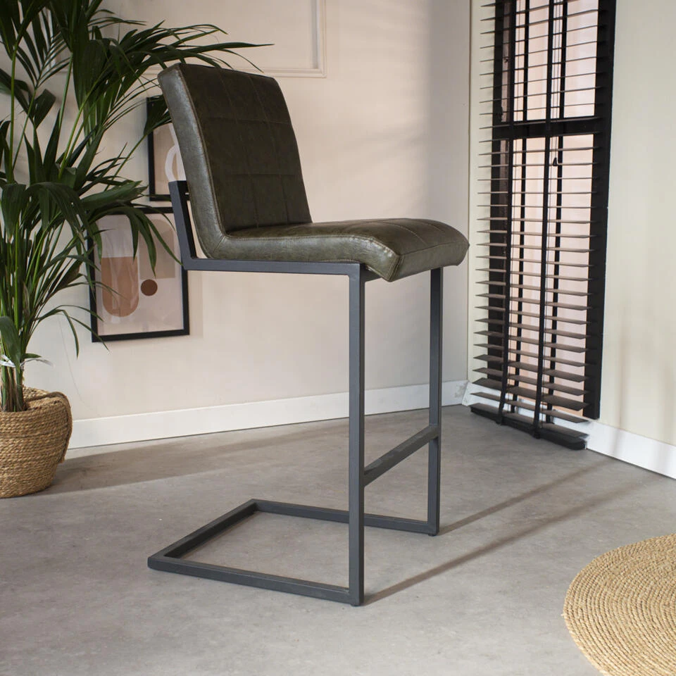 Het frame van de barkruk is van gepoedercoat zwart staal, wat in combinatie met zitting zorgt voor een moderne look. Onder dit product zitten vloerdoppen die laminaat beschermen tegen krassen. Er worden viltjes meegeleverd om overige vloeren te beschermen tegen krasvorming.