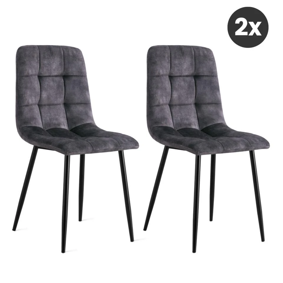 De velvet eetkamerstoel heeft een speels ruitpatroon en met zijn vier metalen poten zorgt hij voor stevigheid. De stoel kan dan ook tot honderdvijfentwintig kilogram dragen. Velvet meubelen zijn tegenwoordig niet meer weg te denken uit ons interieur. En als je het ons vraagt, terecht. Deze modieuze stof vergt namelijk weinig onderhoud, omdat het waterafstotend en slijtvast is.
