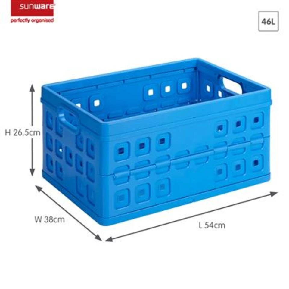 De Square vouwkratten van Sunware zijn robuust en stevig en laten zich compact opbergen wanneer ze niet in gebruik zijn doordat ze eenvoudig inklapbaar zijn. Ideaal dus voor onderweg! De 46L Square vouwkrat is een groter model om nog meer boodschappen of (sport-, kampeer-) spullen te vervoeren. Door de twee handgrepen aan de zijkant is de krat makkelijk te tillen. Heeft u liever een ander kleurtje? Dat kan! Deze kratten zijn namelijk ook verkrijgbaar in het groen, antraciet en zwart.