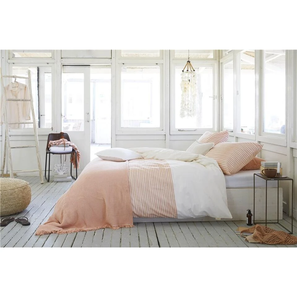 Geef jouw slaapkamer een stoere uitstraling met het overtrek Remade Blurred Feelings. De handgetekende terra en licht terra streepjes gecombineerd met een brede witte baan aan de bovenkant van het overtrek zorgt voor een rustig maar speels effect. Het overtrek is gemakkelijk te combineren in iedere slaapkamer.